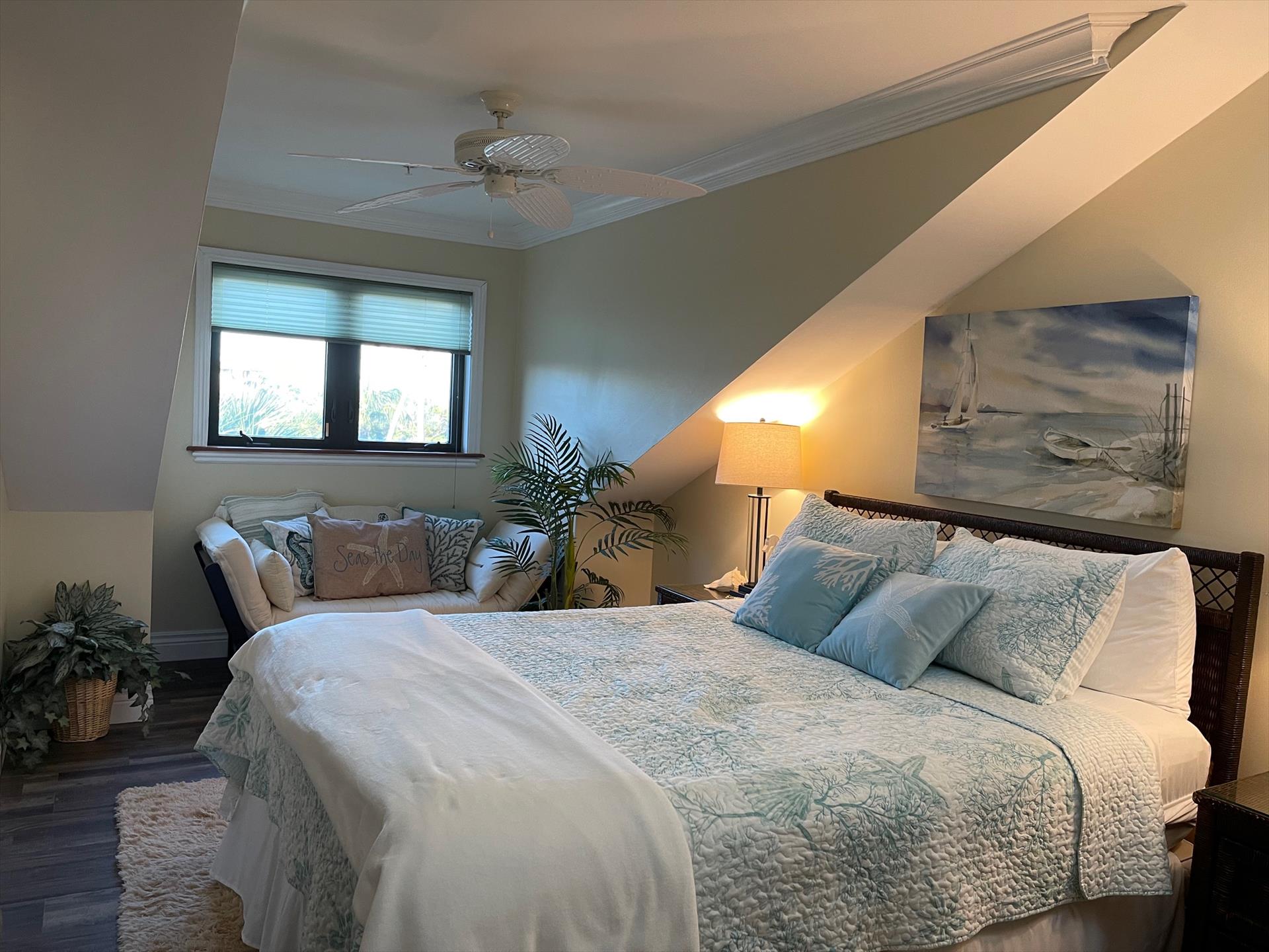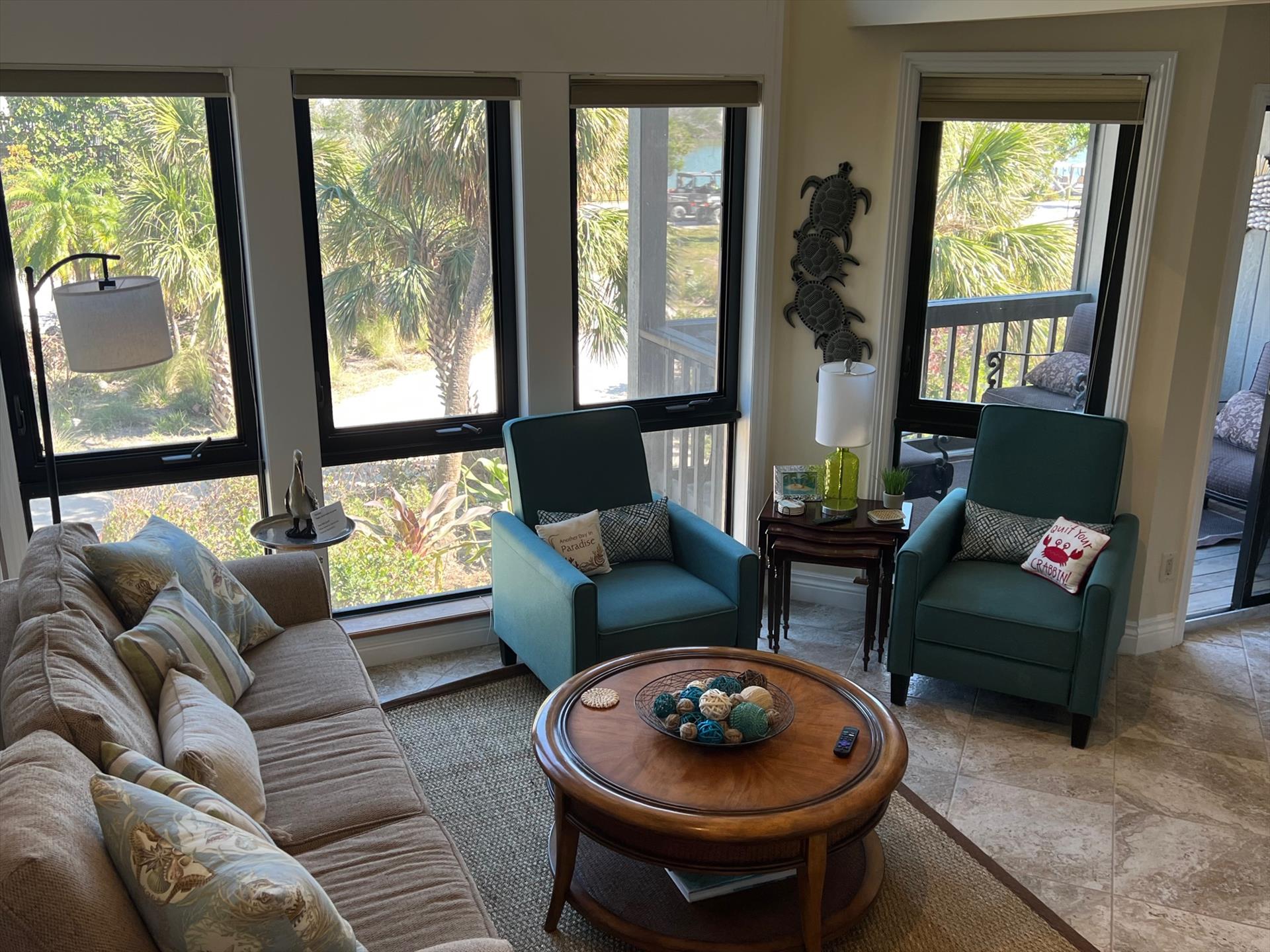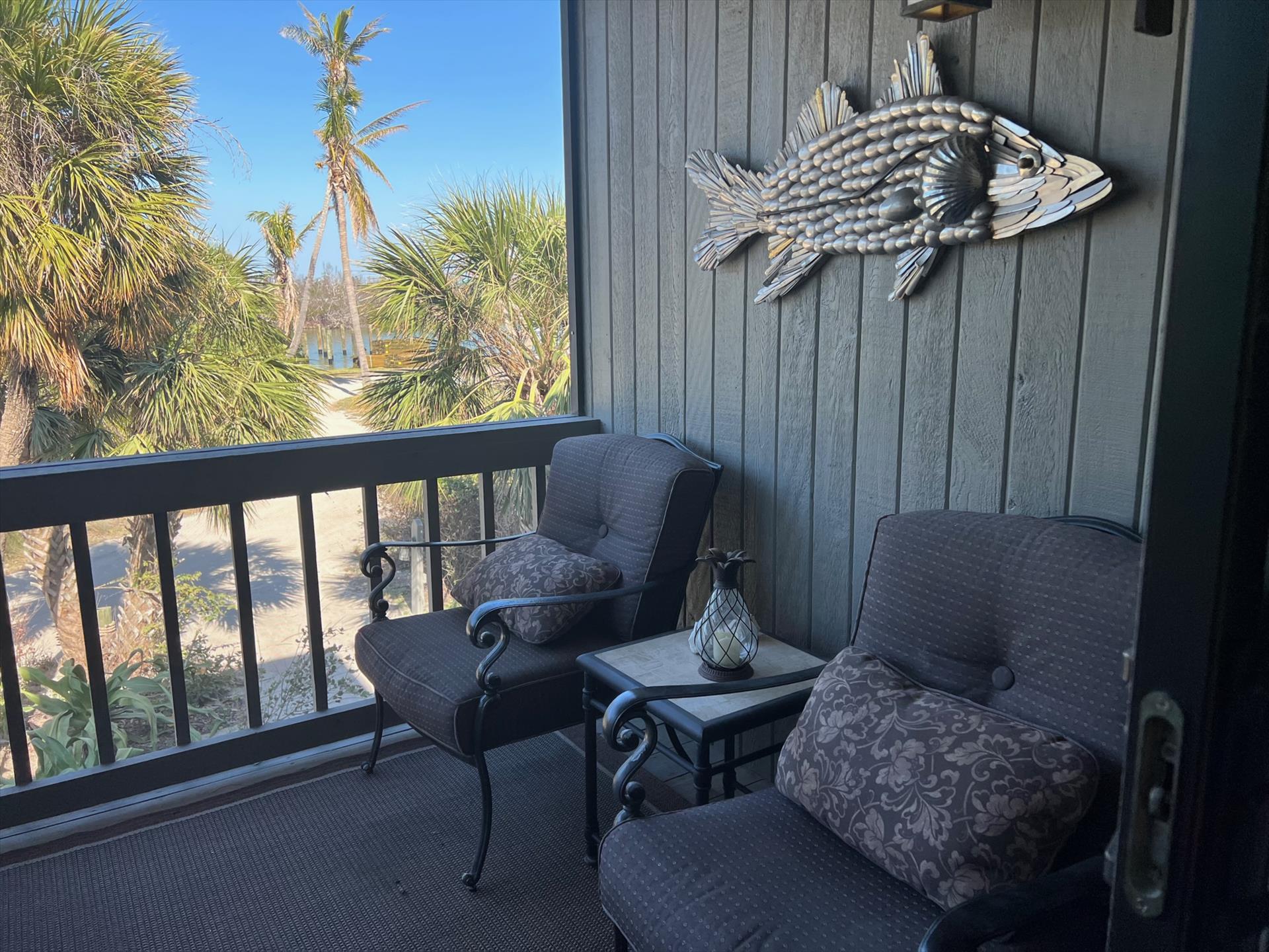 ABOUT BAREFOOT BLISS Townhouse. Welcome to Bright, Tropical and Luxurious! Fantastic Harbor and Bay Views! Relax and Unwind on any of the 2 Outdoor Balconies! One Screened Balcony offers Harbor Views and Sunrise and Sunsets! The other large Back Balcony offers Breezy Outdoor Dining and Lounging Areas. Your Family will Enjoy the Fully Stocked Kitchen and Breakfast Bar and Informal Dining Area. The Bright, Soaring Ceiling Living Room with Entertainment Area is the Perfect Place to Kick Back. The Kitchen, Living Room and Main King Suite are all on the 1st Floor. Main BR offers a King Sized Bed and En Suite Full Bath with Shower Plus a Large Back Balcony. The Large 2nd Floor Guest Bedroom offers a Queen Sized Bed Area is a Great Size Room with Good Room to Move Around, has a Desk/Work area and has Harbor Water Views! 2nd Floor Full Bath offers a Shower Tub Combination. PLUS High Speed Wifi