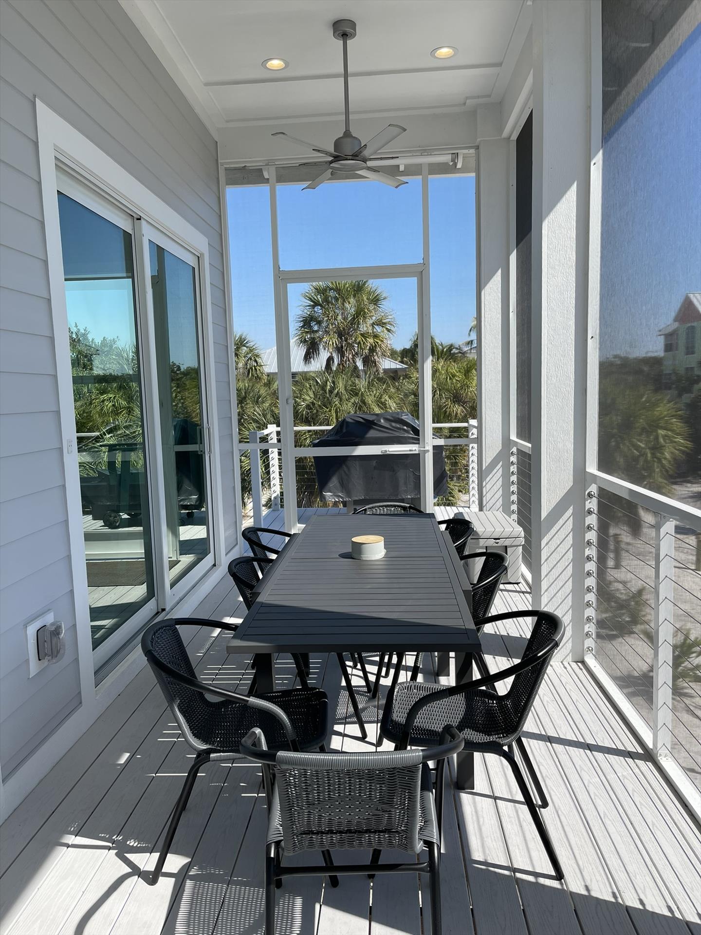 Huge Front Screened Balcony with Dining Table for 8 and Sitting Area for 4