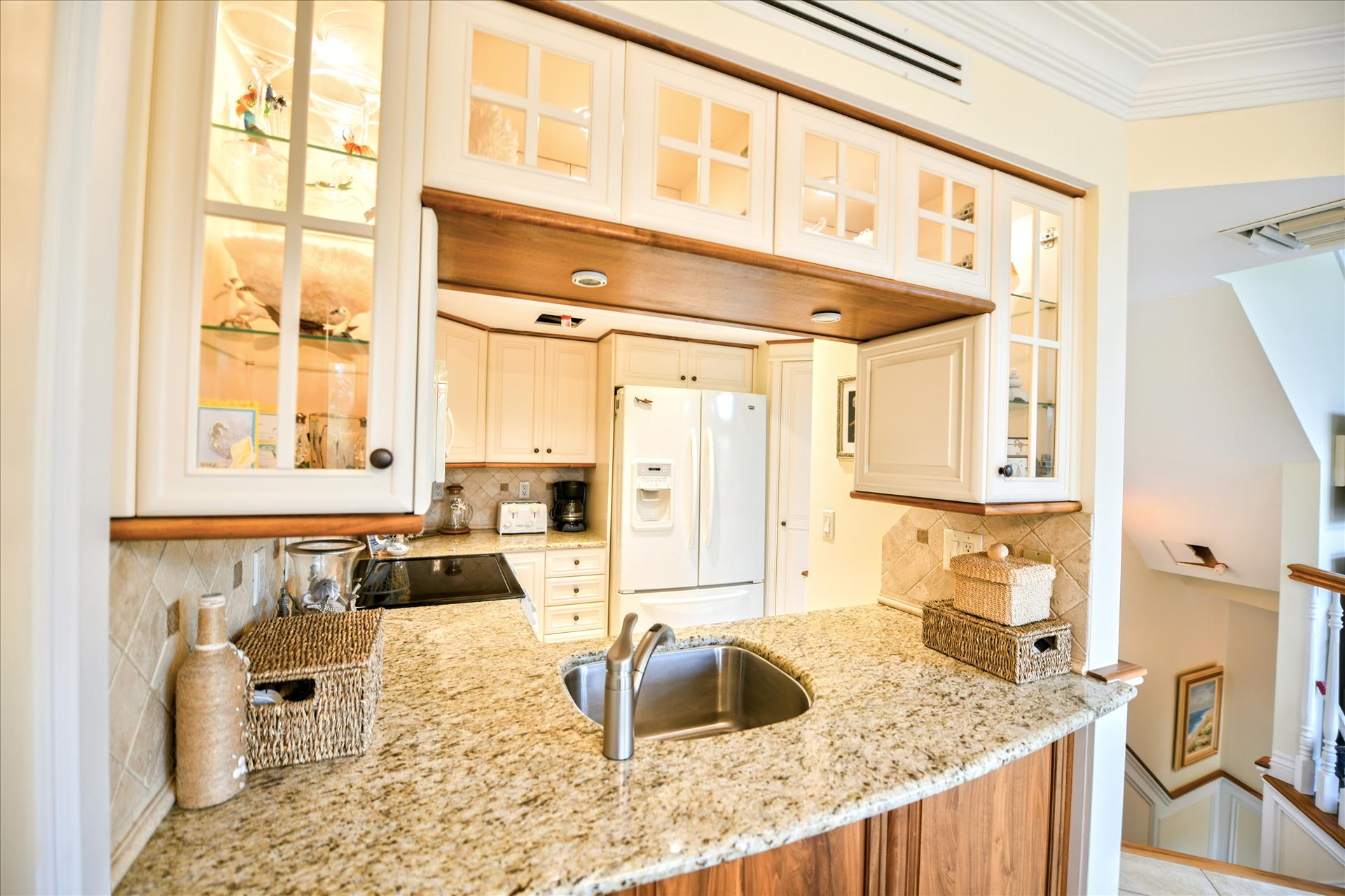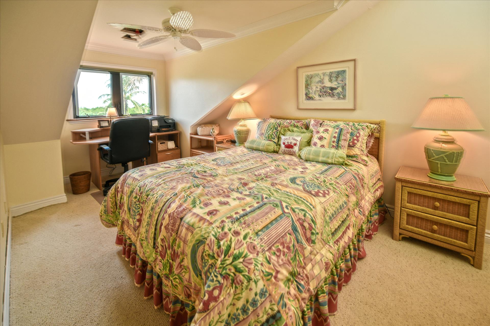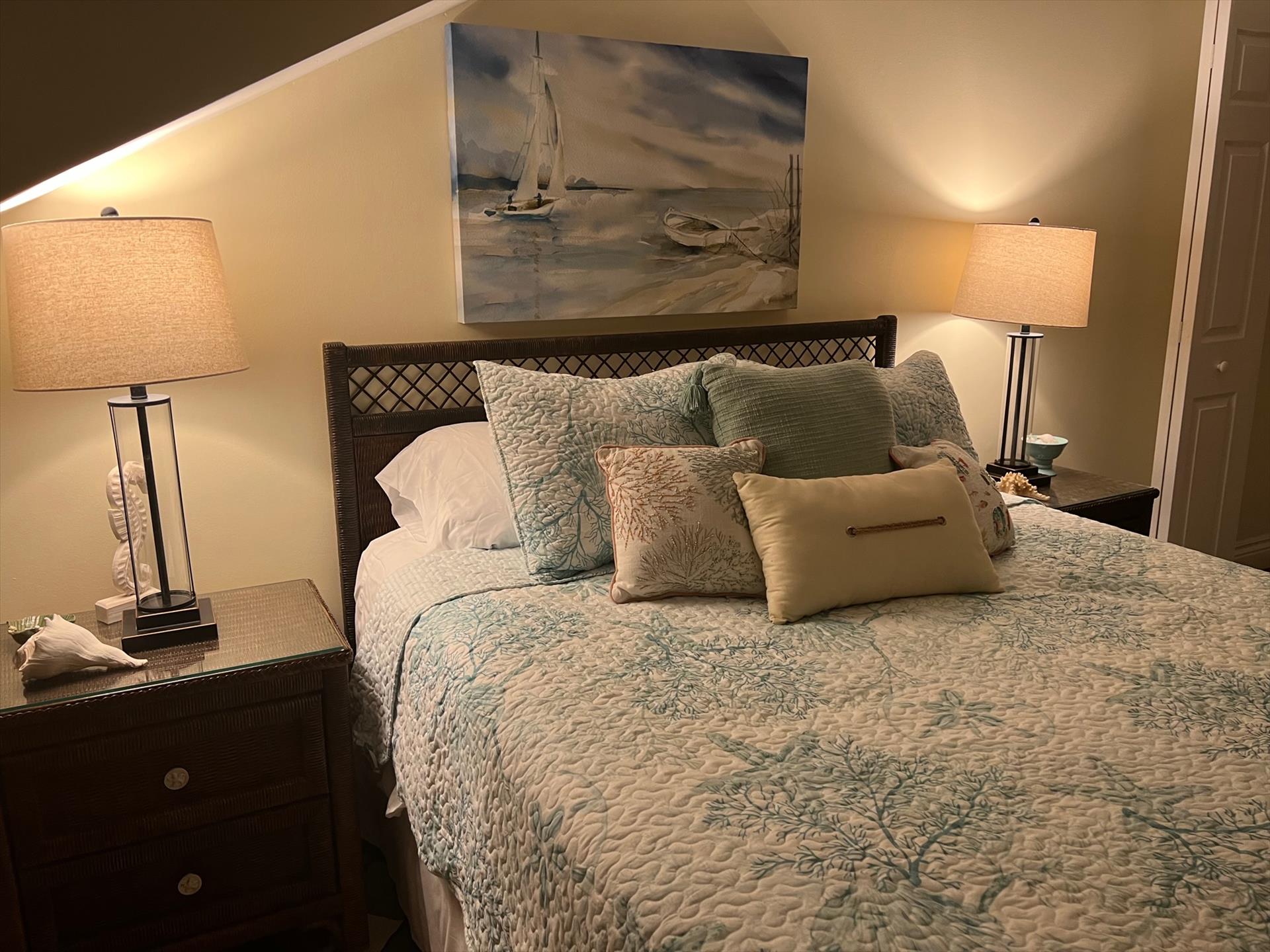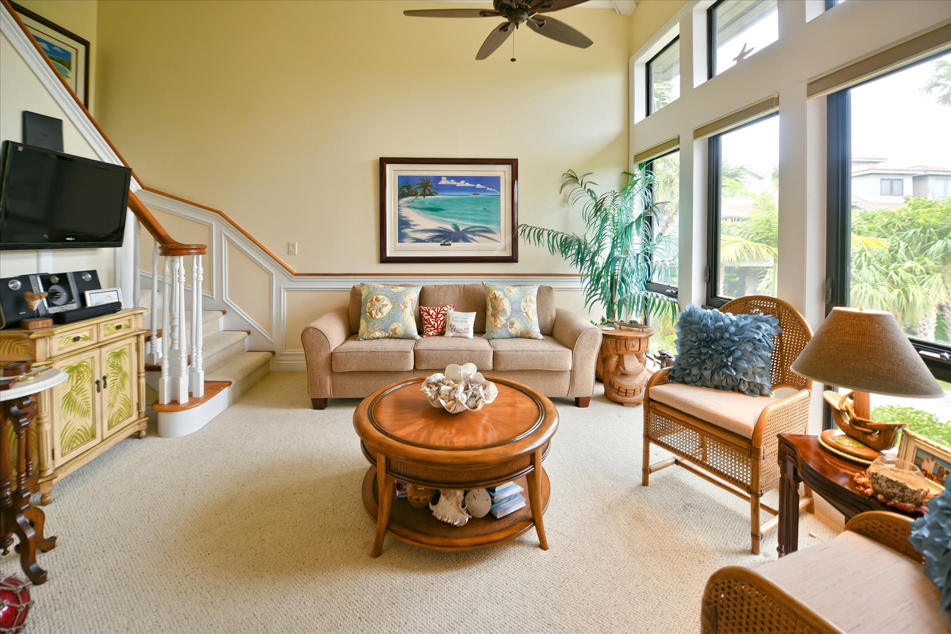 ABOUT BAREFOOT BLISS Townhouse. Welcome to Bright, Tropical and Luxurious! Fantastic Harbor and Bay Views! Relax and Unwind on any of the 2 Outdoor Balconies! One Screened Balcony offers Harbor Views and Sunrise and Sunsets! The other large Back Balcony offers Breezy Outdoor Dining and Lounging Areas. Your Family will Enjoy the Fully Stocked Kitchen and Breakfast Bar and Informal Dining Area. The Bright, Soaring Ceiling Living Room with Entertainment Area is the Perfect Place to Kick Back. The Kitchen, Living Room and Main King Suite are all on the 1st Floor. Main BR offers a King Sized Bed and En Suite Full Bath with Shower Plus a Large Back Balcony. The Large 2nd Floor Guest Bedroom offers a Queen Sized Bed Area is a Great Size Room with Good Room to Move Around, has a Desk/Work area and has Harbor Water Views! 2nd Floor Full Bath offers a Shower Tub Combination. PLUS High Speed Wifi