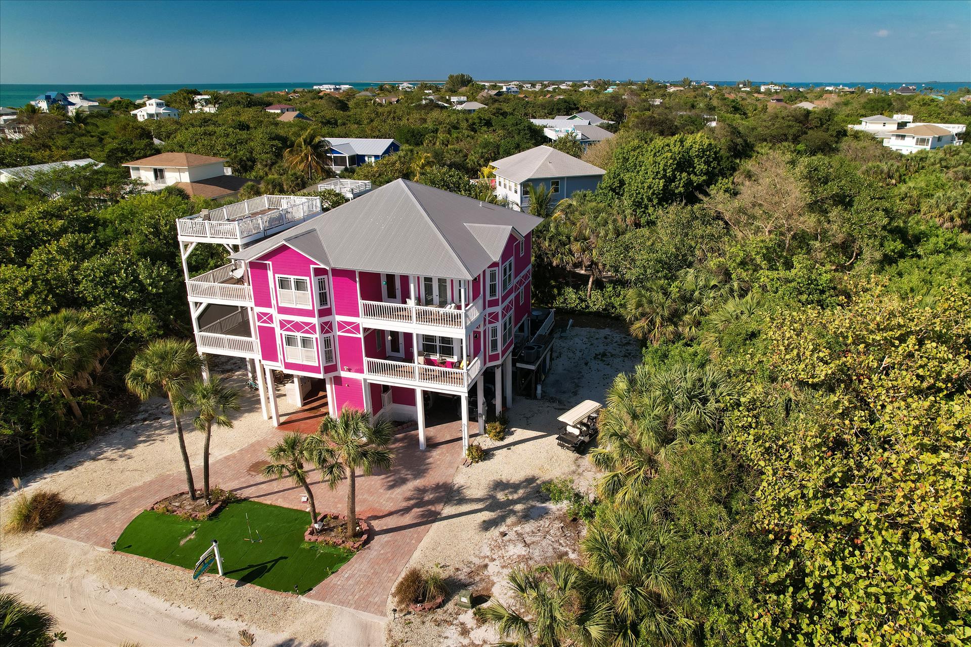 PRIVATE BEACH ACCESS IS A 5 MINUTE WALK AWAY! BEACH CHAIRS, BEACH CANOPIES, BEACH UMBRELLAS, TWO KAYAKS, TRAILER, OUTDOOR BASKETBALL HOOP AND A BASKETBALL, OUTDOOR POOL TABLE, POOL TOWELS, 2 LIFTED GOLF CARTS INCLUDED, ELEVATOR FOR PERSONS NEEDING ASSISTANCE, WHEEL CHAIR ACCESSIBLE, INGROUND HEATED POOL, MULTIPLE PORCHES AND BALCONIES, 360 DEGREE ISLAND VIEWS FROM THE OBSERVATION DECK.