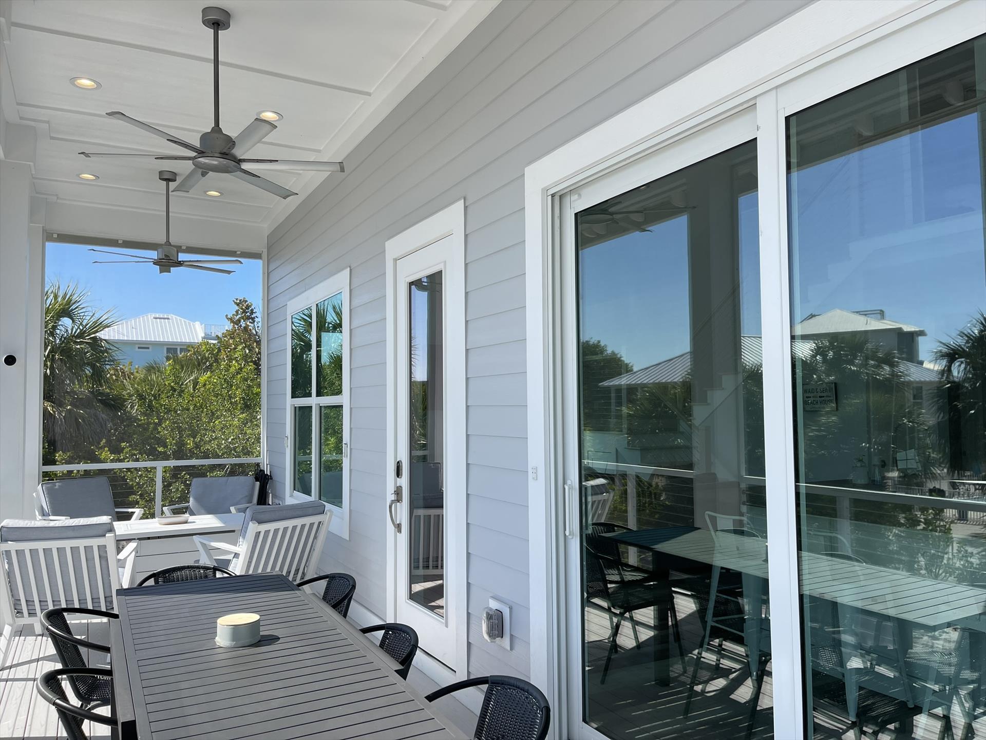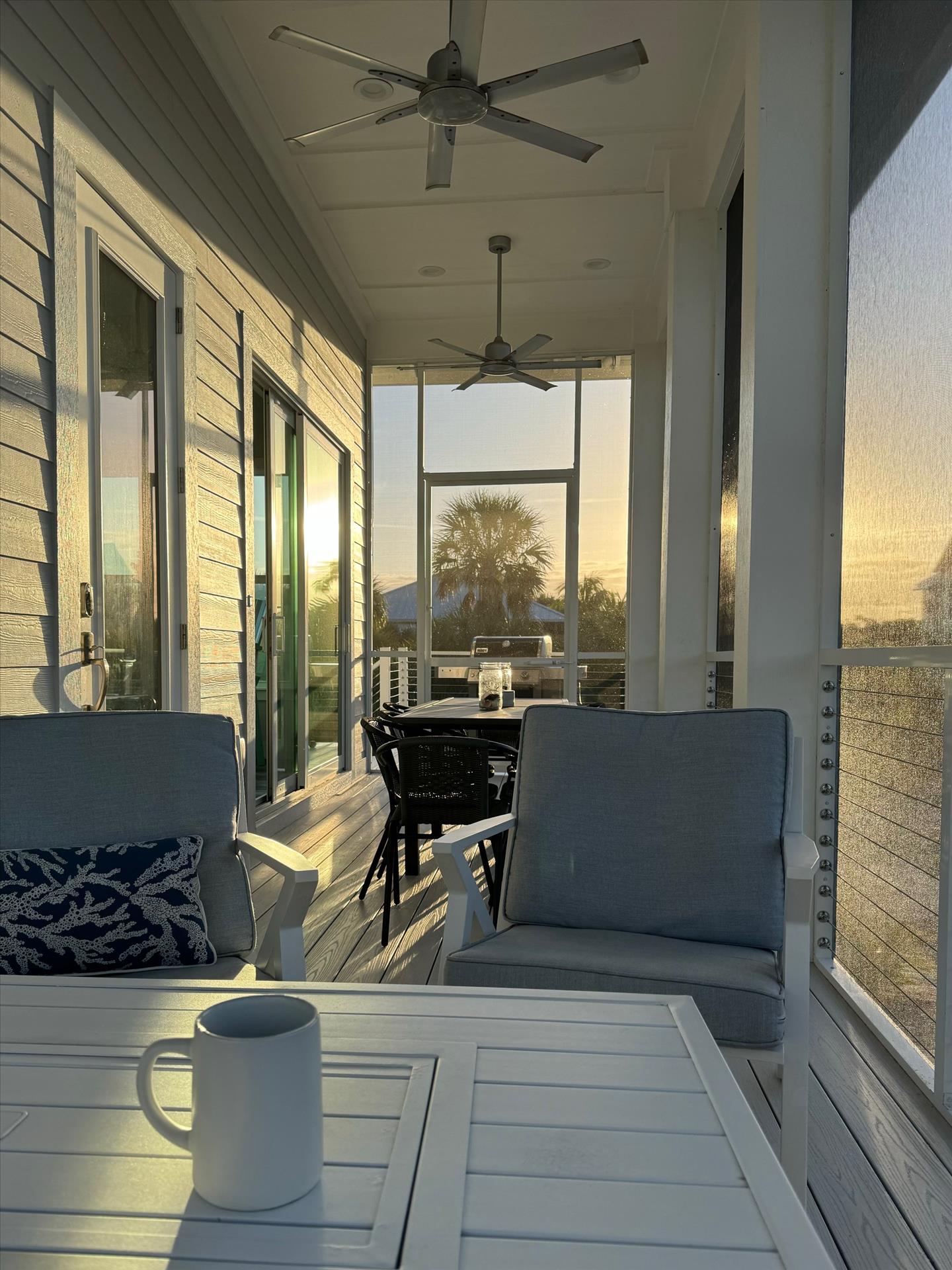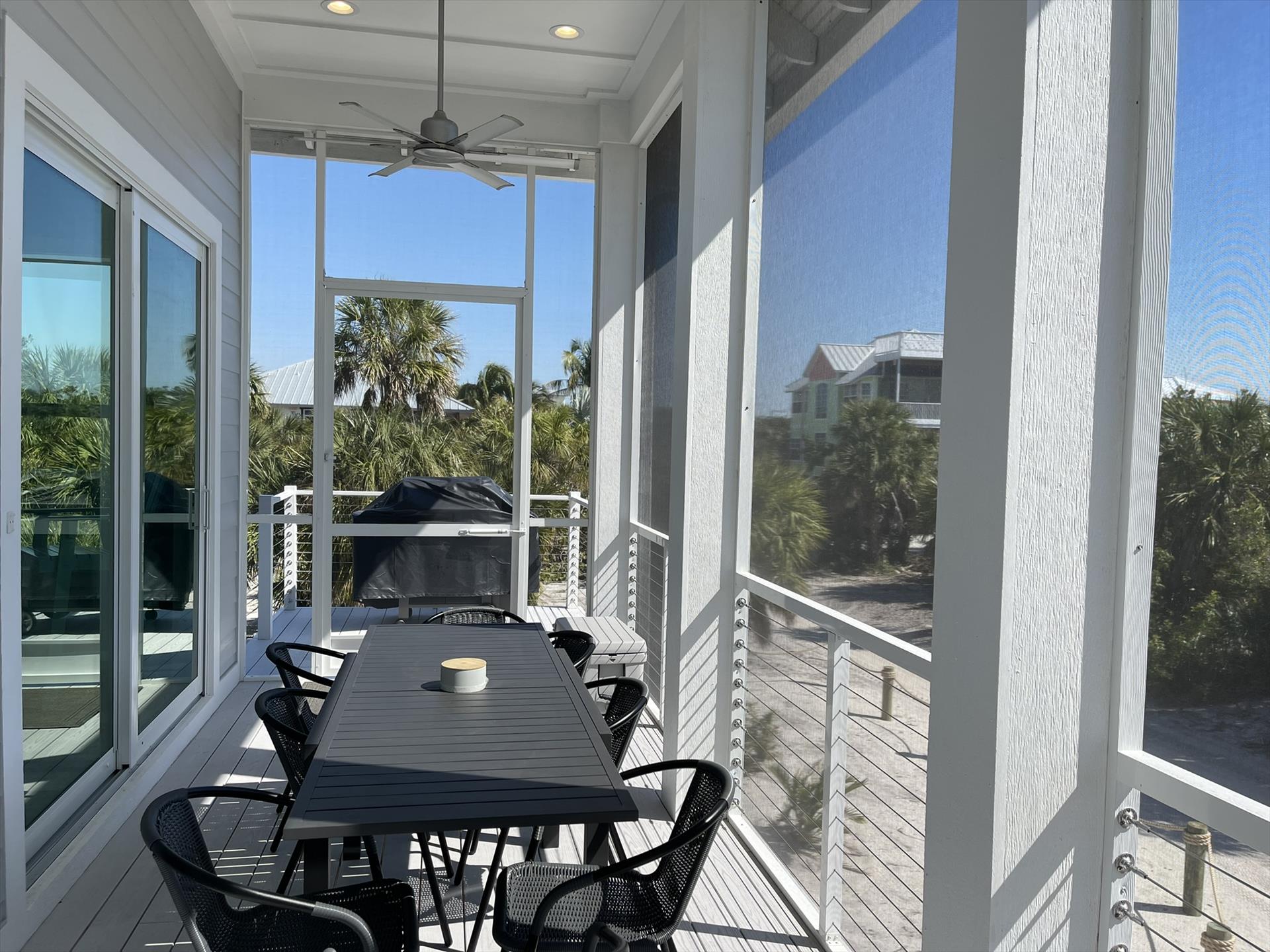 Huge Front Screened Balcony with Dining Table for 8 and Sitting Area for 4