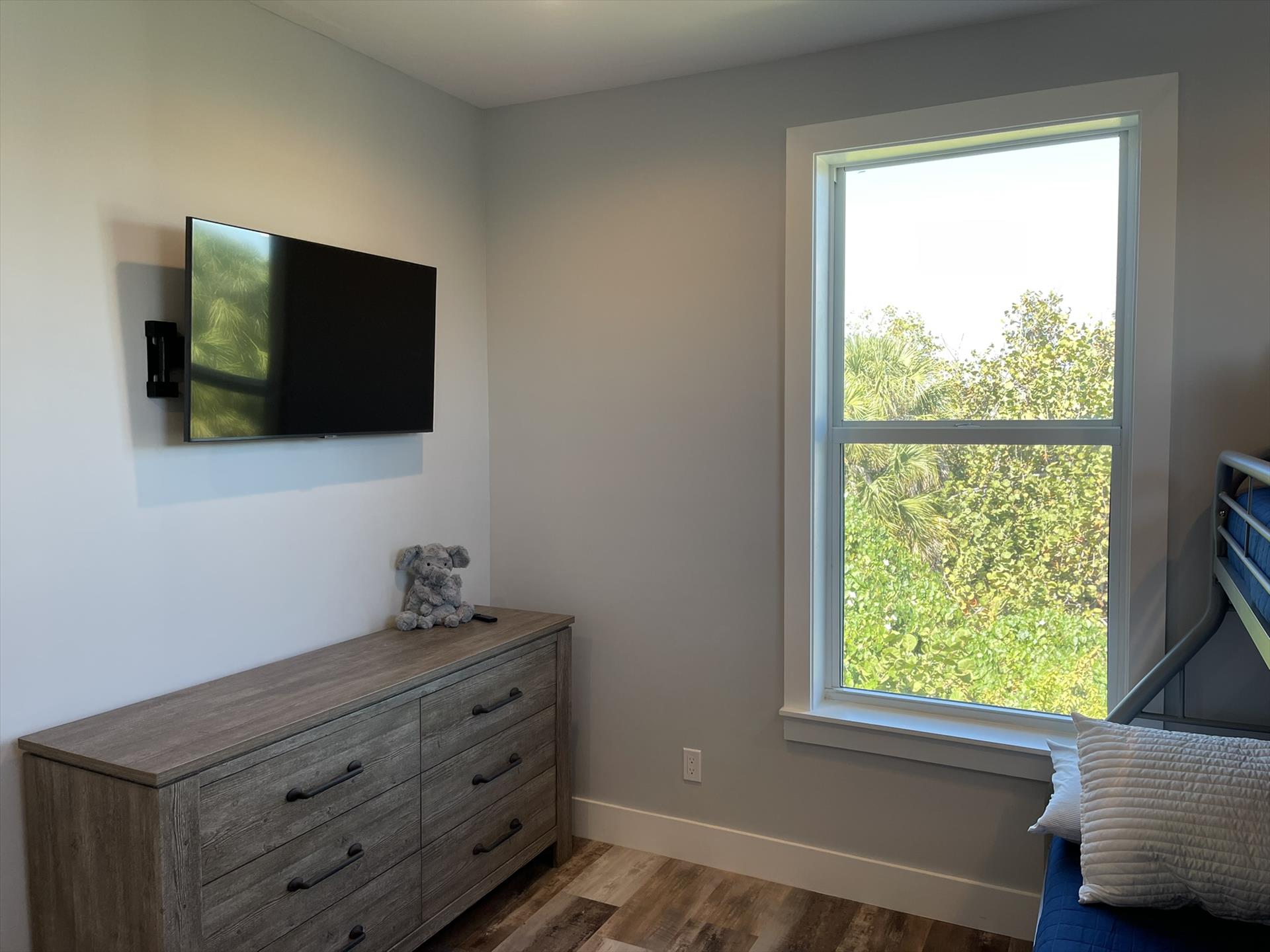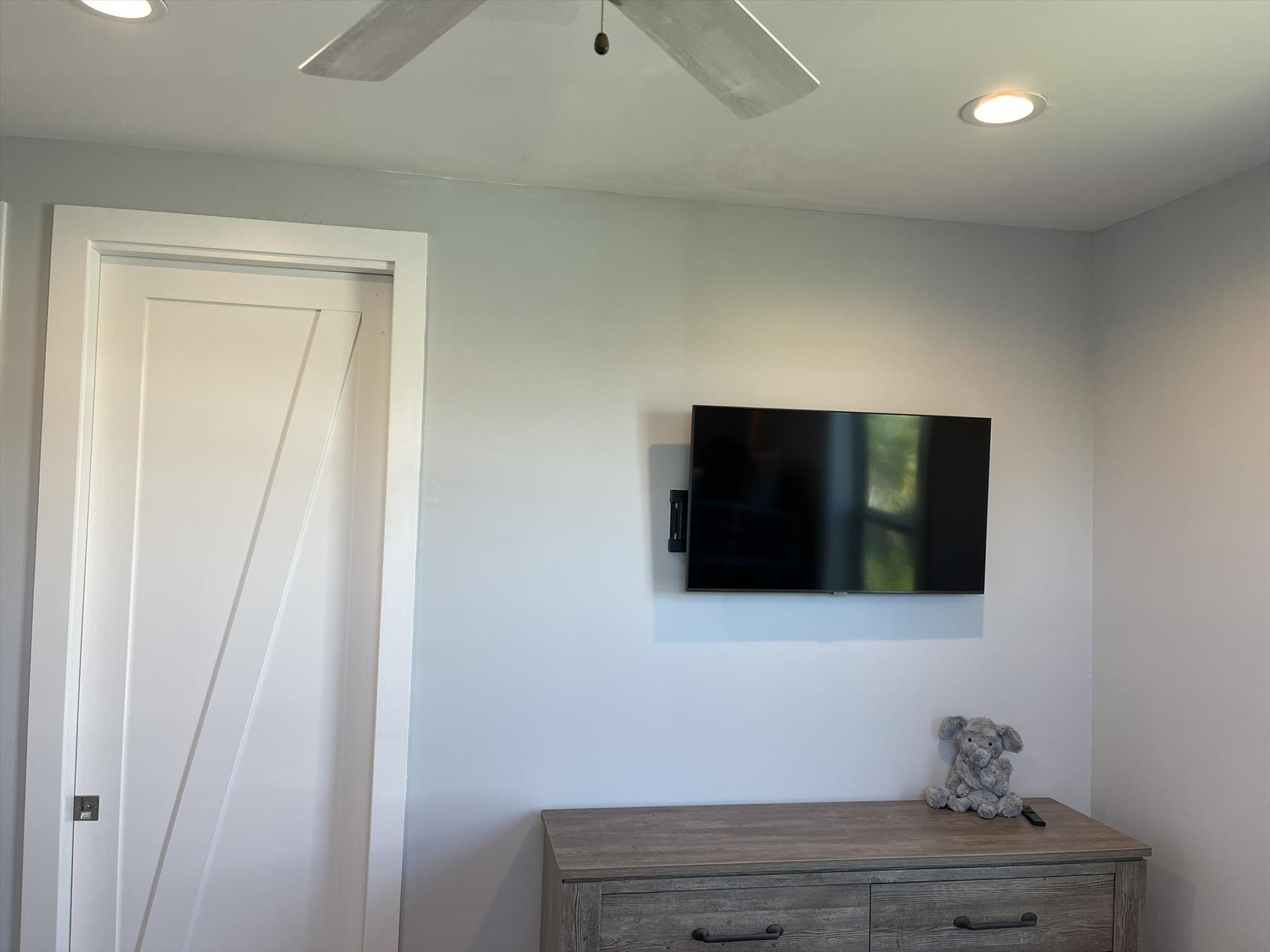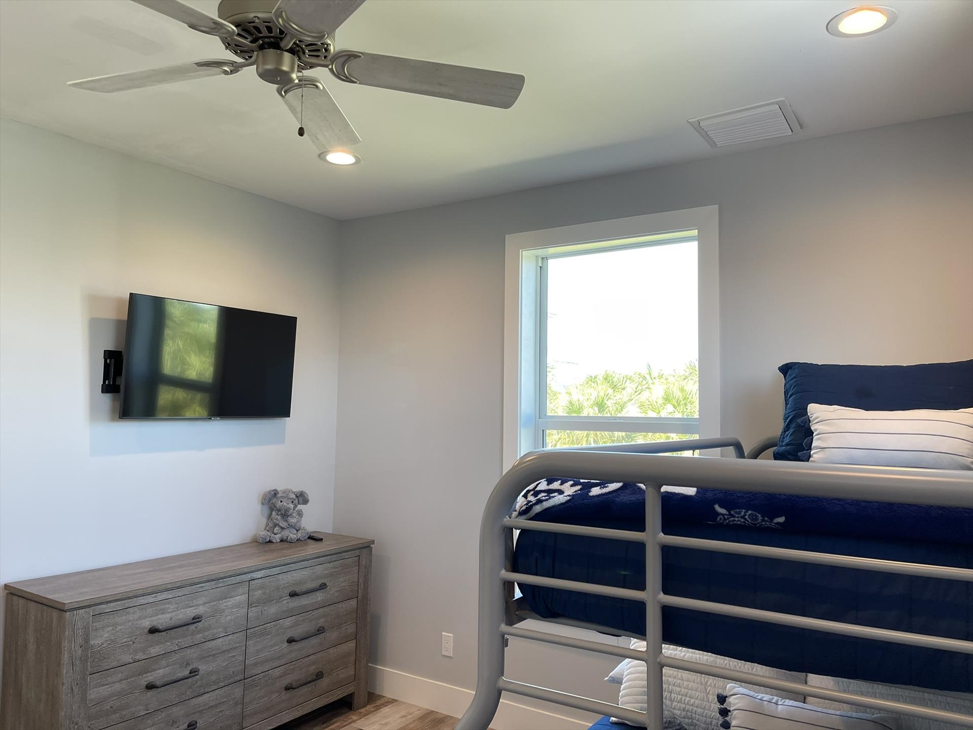 1st Floor - "Kids" Bedroom Right Side - Top Twin Bunk with Bottom Full Bunk, TV, Fan, Bureau, Closet and access to the Hallway Guest Full Bath.