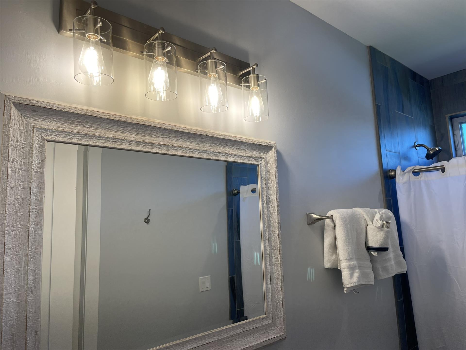 1st Floor - Full Bath with Sink, Toilet, Large Tiled Shower.