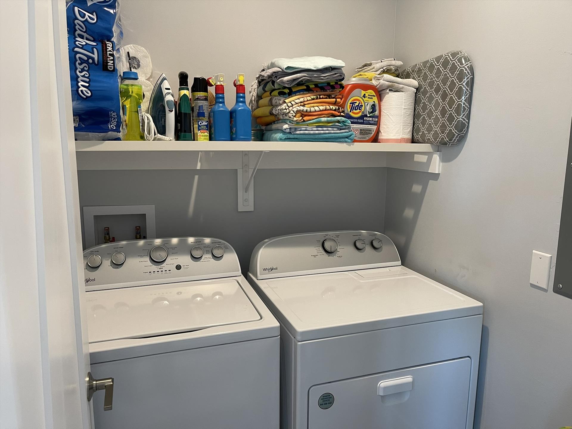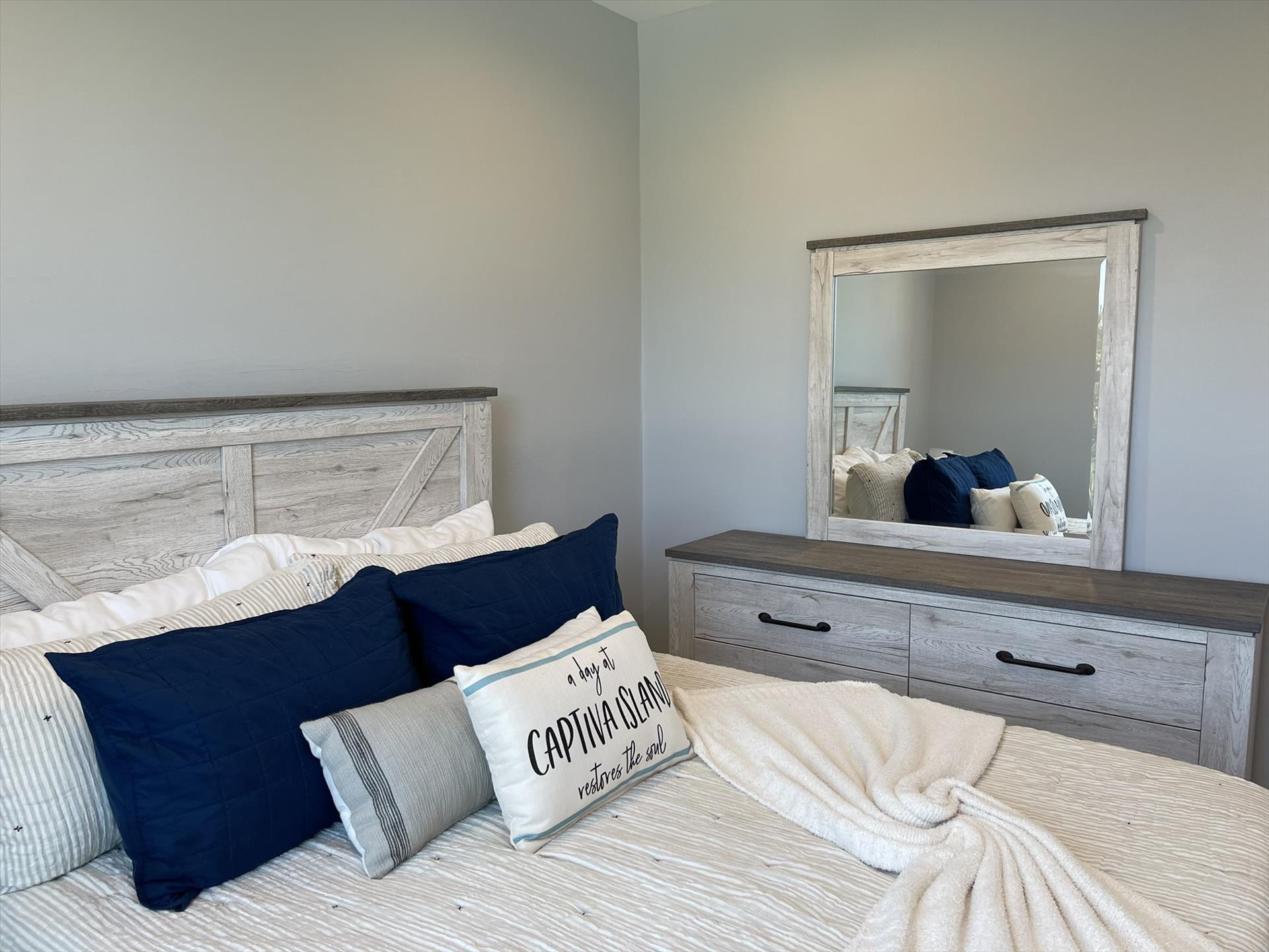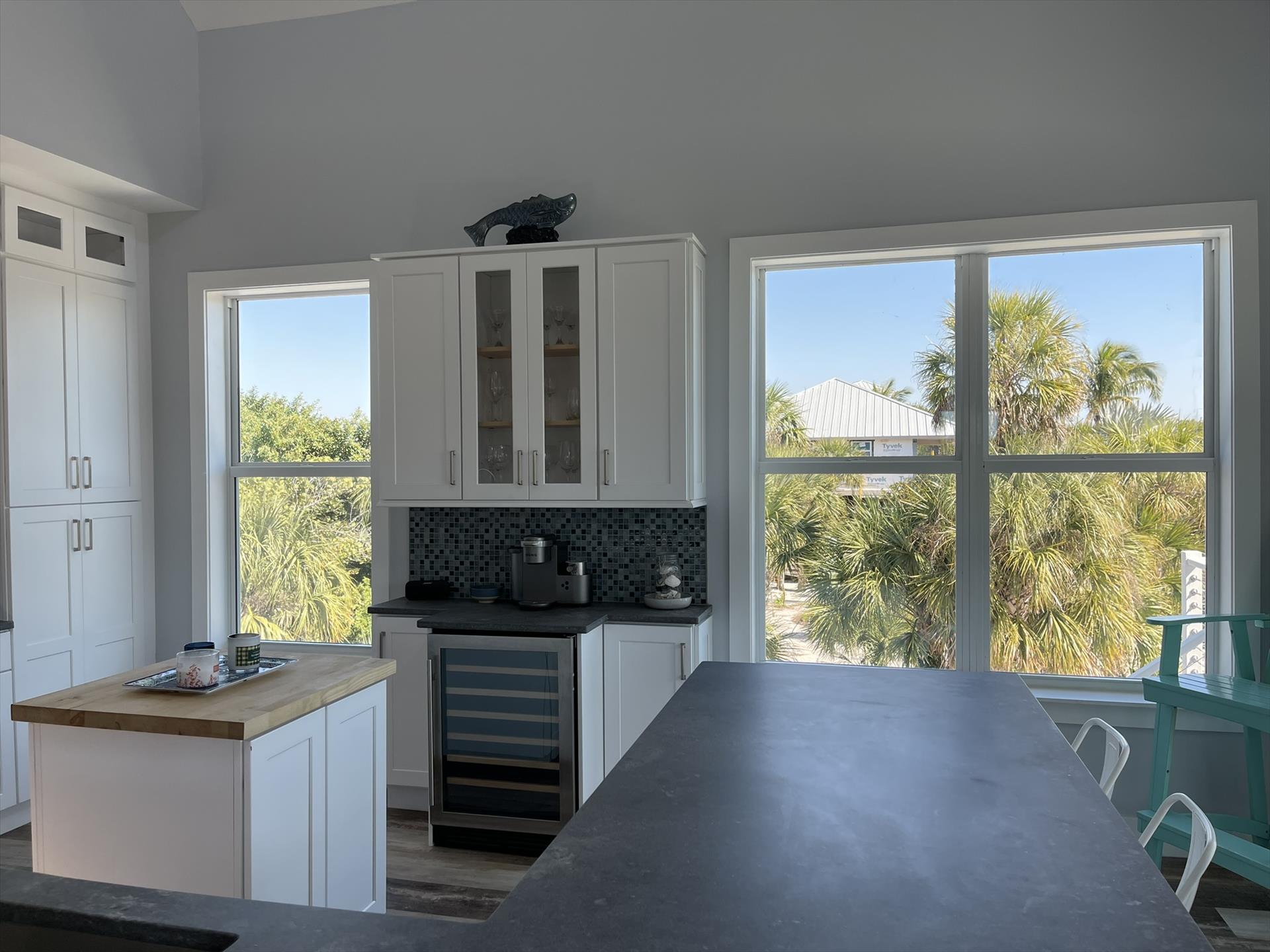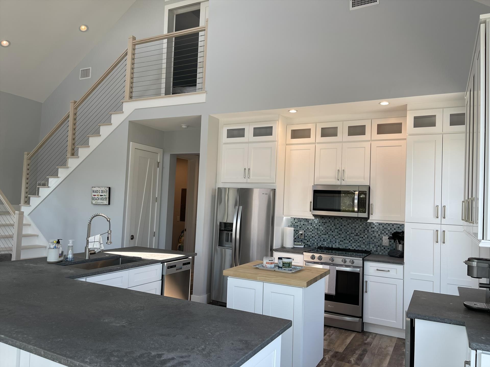 Gorgeous 4 Bedrooms, 3 Full Baths, Large Kitchen Island with Seating for 8, Full Refrigerator, Beverage Refrigerator, Soaring Ceilings, Recess Lighting Throughout, Living Room, Inside Laundry Room with Full Size Washer and Dryer. Linens, Towels, Beach Towels, Beach Toys, Beach Chairs, 2 Beach Umbrellas included. Propane and Propane Grill Included. 2 Golf Carts included Complimentary. Starter Toiletries included which is Dish Soap, Laundry Soap, Sponge, Garbage Bags, Shampoo, Conditioner, and Body Soap.