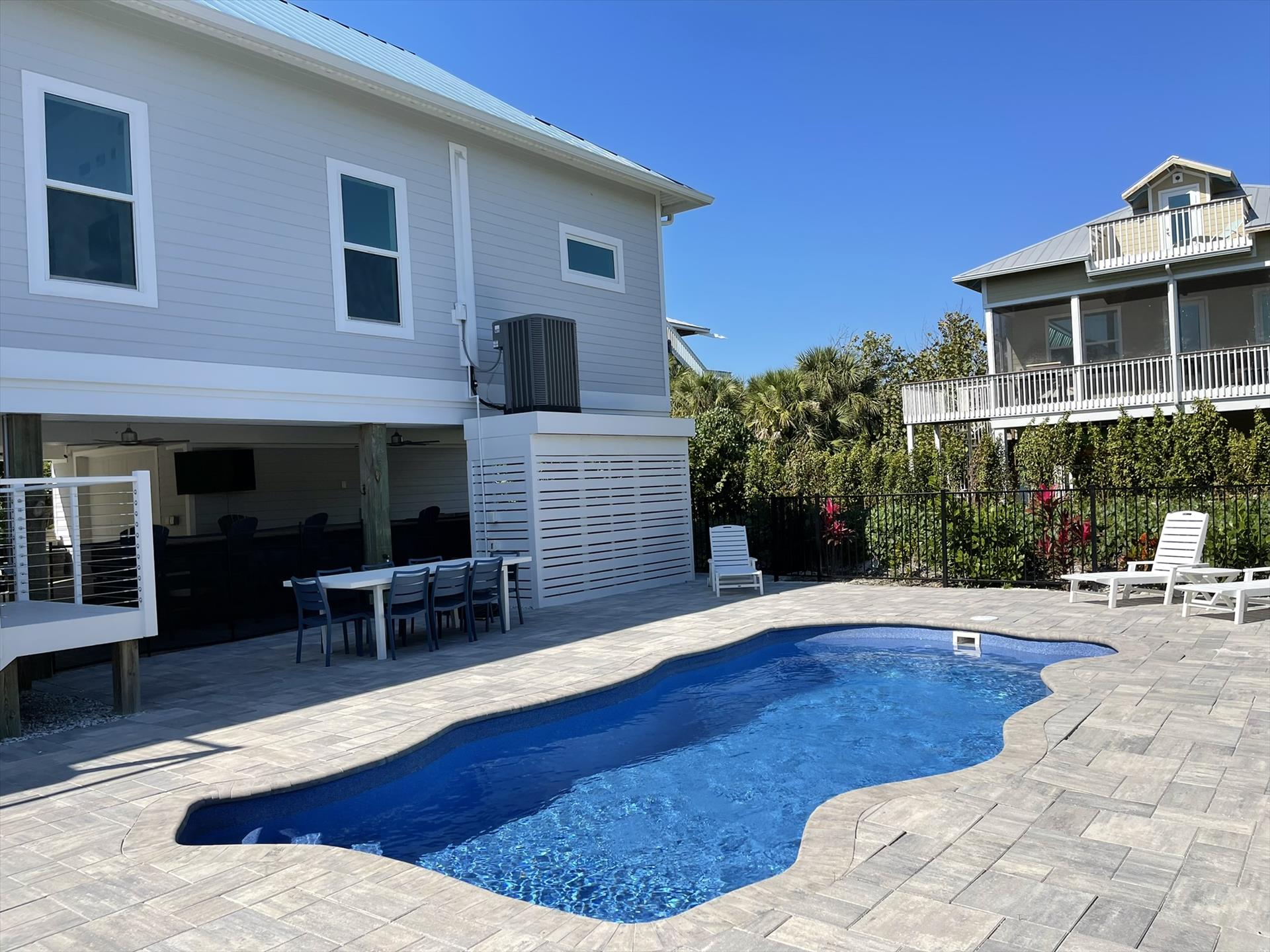 Located on the Barrier Island of North Captiva! This 4 Bedroom, 3 Full Bath, a Private Heated Pool Home and with Temporary Boat Dockage as available is now open for vacation bookings! This Superb Beach House is located only steps to the Ocean on the most desirable High and Dry Side of the Island. It is approximately 500 Feet from the Best Island Beach "Butterfly Beach" which offers White Sugar Powdered Sand, Amazing Gulf Ocean Views and Wildlife, and World Class Fishing and Shelling. You will find no cars here in paradise as transportation is only by foot, bike, or golf carts. Unspoiled and Unrushed with Beauty all around you, North Captiva Island and "Waid N Sea" offers you an Amazing Vacation Destination.